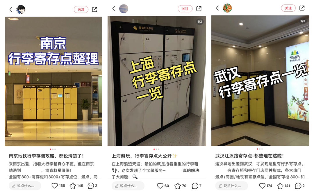 比如,寄存App侧重提供全国各地的寄存点攻略。