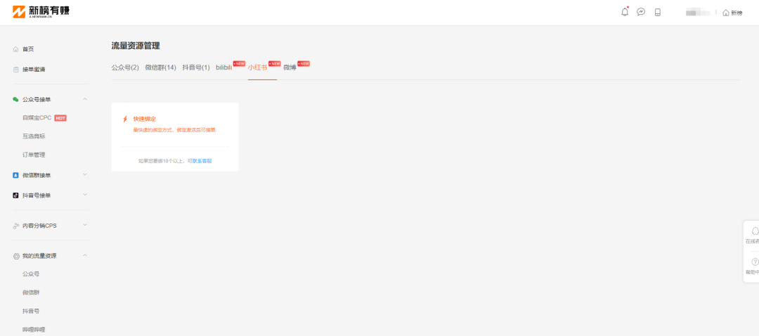 不想错过这一波节奏的流量主朋友们,赶紧摩拳擦掌、趁机储备变现流量!相信老朋友们已非常熟悉新榜有赚的变现方式。为了大家能快速绑定资源,我们已上线炒鸡简单的绑定方法,以助公众号接单,抖音接单,小红书接单,接到你手软!