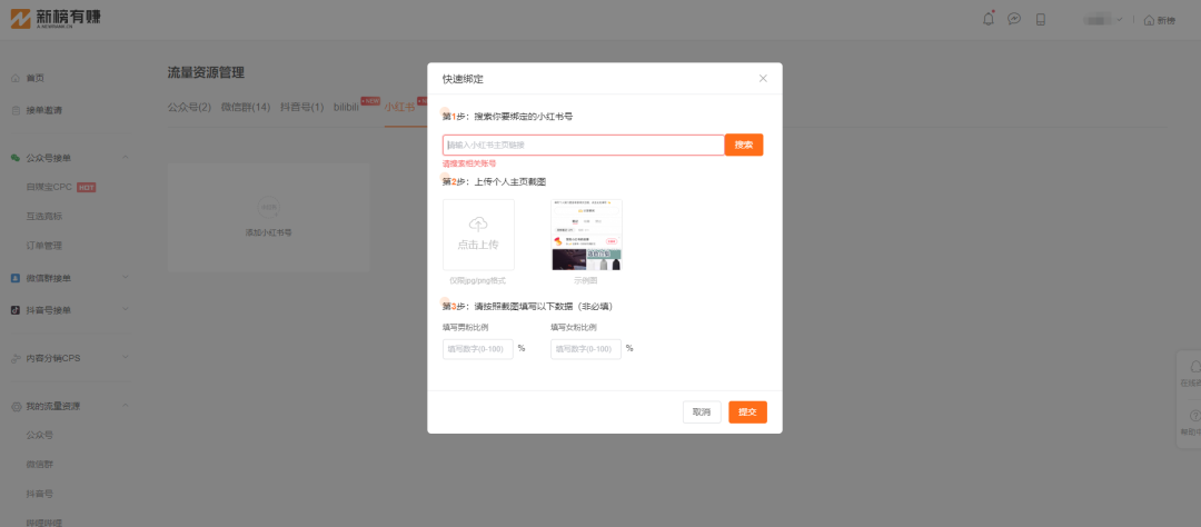 以前如果您想要在新榜有赚进行流量变现,可以通过扫码授权和唯一码绑定两种方式绑定资源账号: