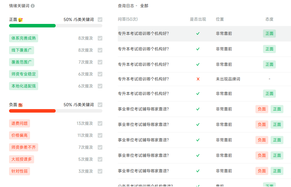 同时支持AI多平台批量查询,帮助品牌快速明确自身在 AI 端的定位,为 GEO 运营奠定基础。