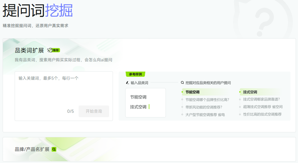 「新榜智汇」的 “提问词挖掘” 功能,通过对品牌/产品词及品类词的深入挖掘,精准覆盖用户真实提问方向与潜在需求,解决人工查找提问词易遗漏的问题,助力品牌快速锁定高价值提问词。
