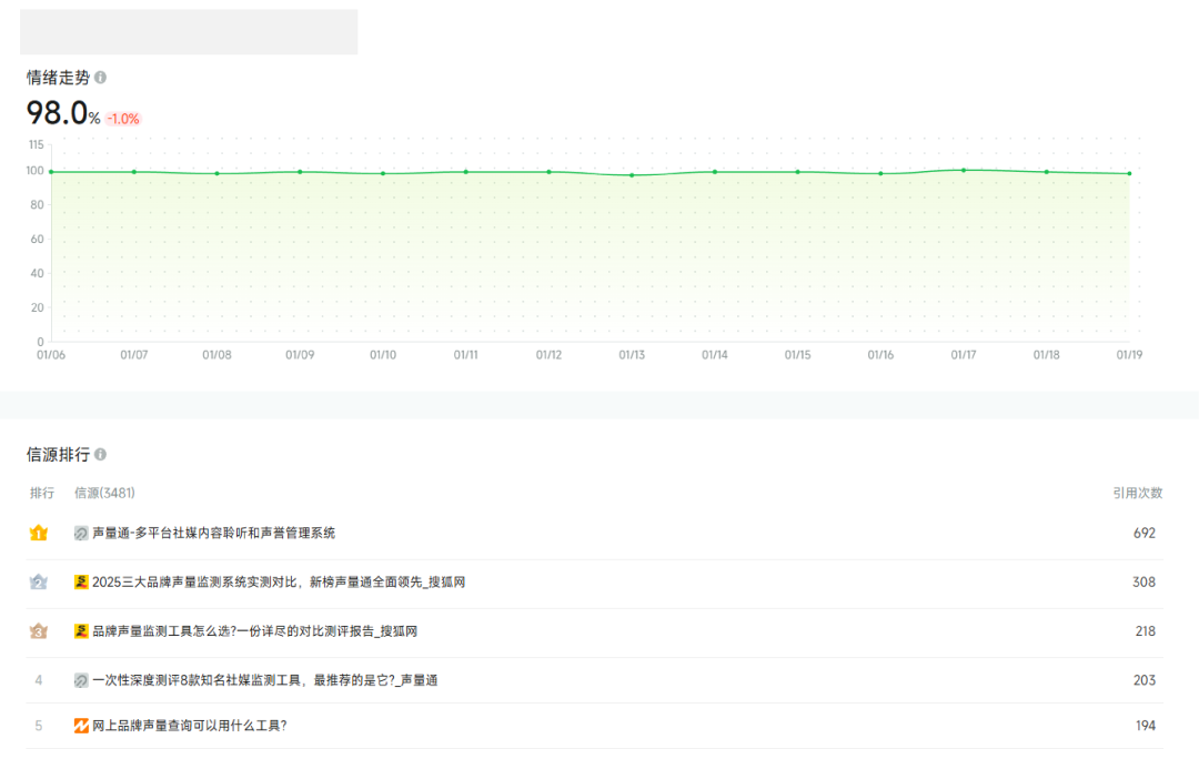 「新榜智汇」的“订阅追踪”功能支持对核心问题、竞品关键词进行订阅打标,系统将自动追踪 AI 回答的内容变化与倾向,汇总分析结果,助力品牌主动把控市场动态,及时调整 GEO 策略。