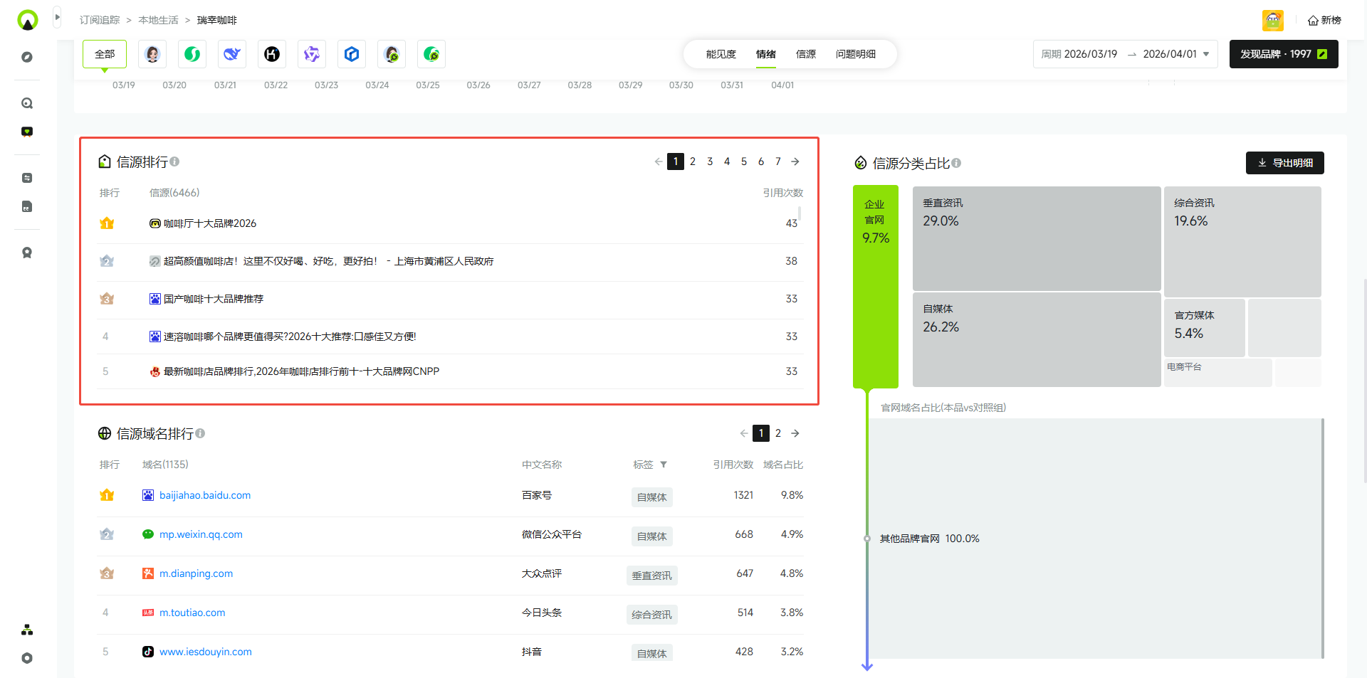 我们以新榜智汇瑞幸咖啡2026.03.19至2026.04.01的信源数据为支撑,通过2个大问题的回答洞察GEO优化方向。