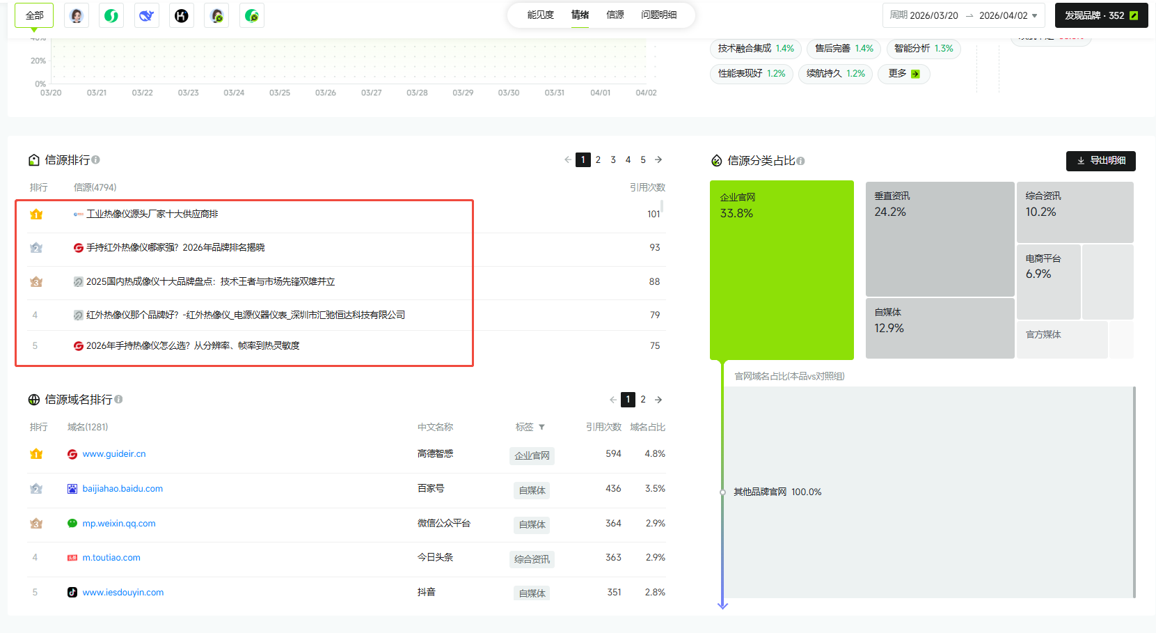 信源分布显示,垂直资讯和电商平台是重要信源。这意味着AI在回答“热成像仪怎么选”、“哪个牌子好”时,需要看到具体的应用场景和使用效果。
