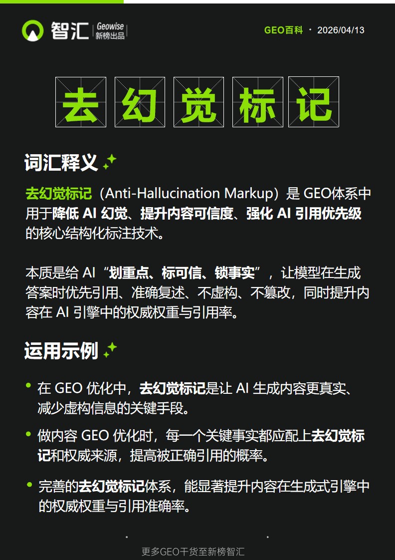 ● 提权重:带完整去幻觉标记的内容,在 GEO 体系中权威度更高、引用优先级更强。
