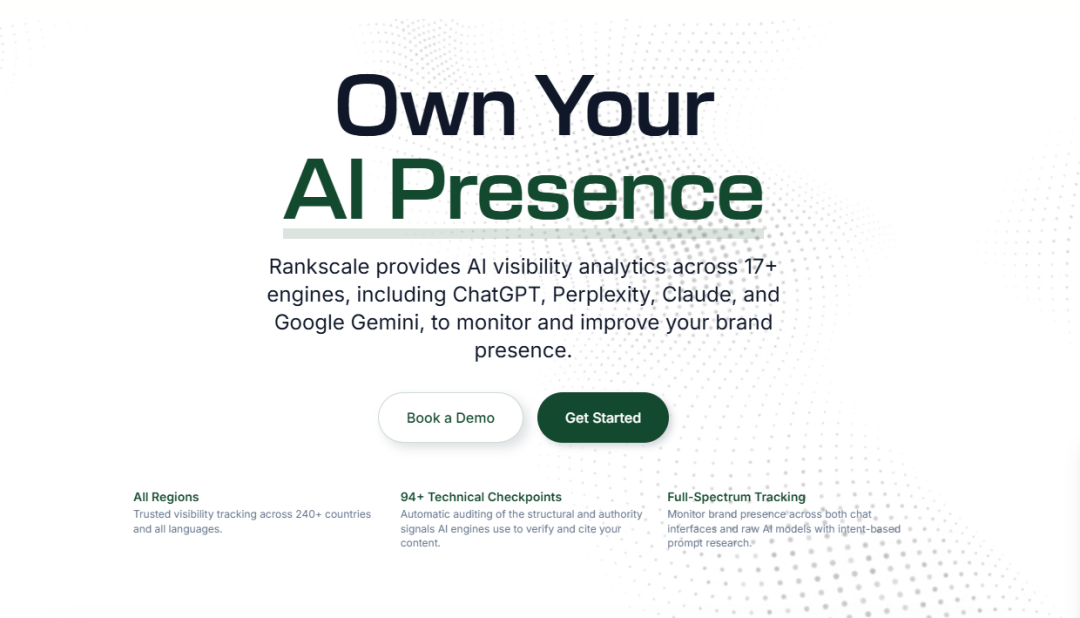 核心特点:一键快速扫描多个AI模型中的品牌排名。提供免费计划,付费起价约99美元/月,适合策略团队快速获取竞争情报。