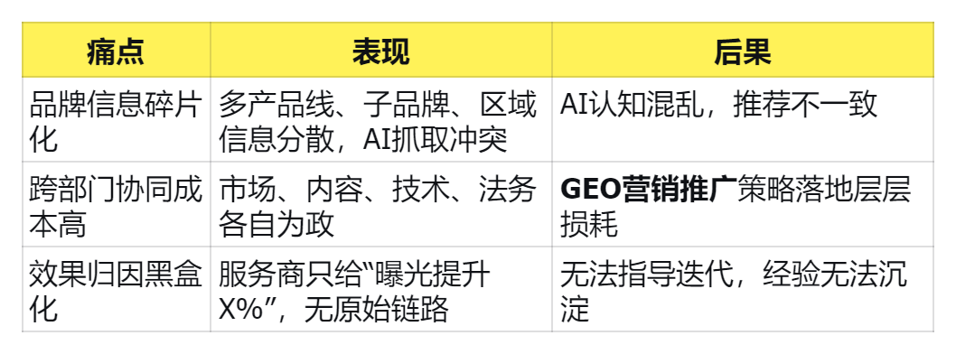 一、中大型企业开展GEO营销的三大痛点
